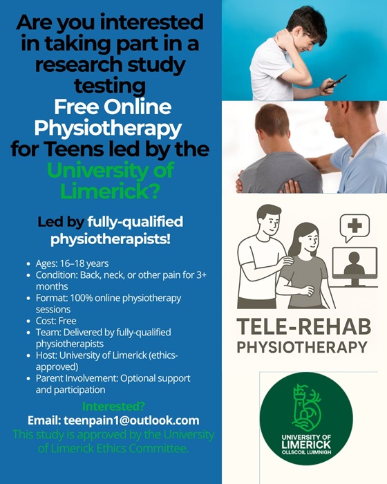 Young people aged 16–18 with back, neck, or other persistent pain are invited to take part in a free online physiotherapy study.